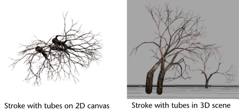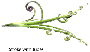 Tubes can grow into an almost infinite variety of shapes and forms (for example, plants, hair, fire, and water) depending on the attributes you set for the stroke.