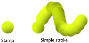 If the stroke is simple (it has no tubes), the stamps are applied along the stroke path.