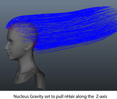 To control how the hair style reacts to forces, like Nucleus gravity, or how it collides with other Nucleus objects, such as the face, scalp, neck, or shoulders of a model, set: