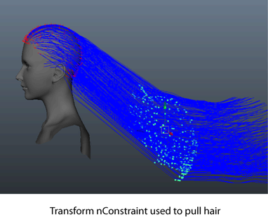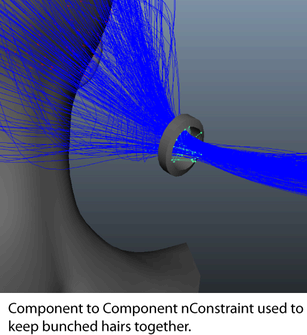 After achieving a basic shape or style, use nConstraints to hold the hair style in place such as in clasps and ponytails. For example, you can create: