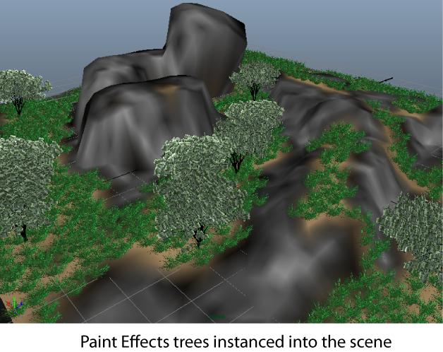 Notice that all the trees are the same size and shape. In the next section, you create expressions to randomly generate values for the size and orientation of the trees.