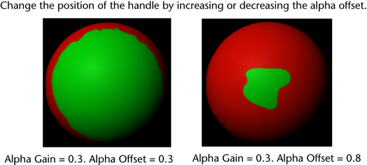 To alter the position of the handle, expand the Color Balance section of the texture in the Attribute Editor. Increase or decrease the Alpha Offset value.