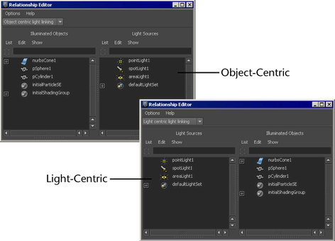 Relationship Editor in either Light-Centric or