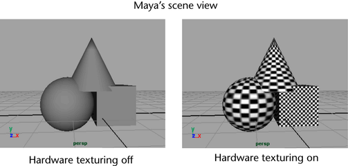 Hardware texturing, which you can easily turn on or off, lets you see approximations of the textures, lights and objects in your scene.