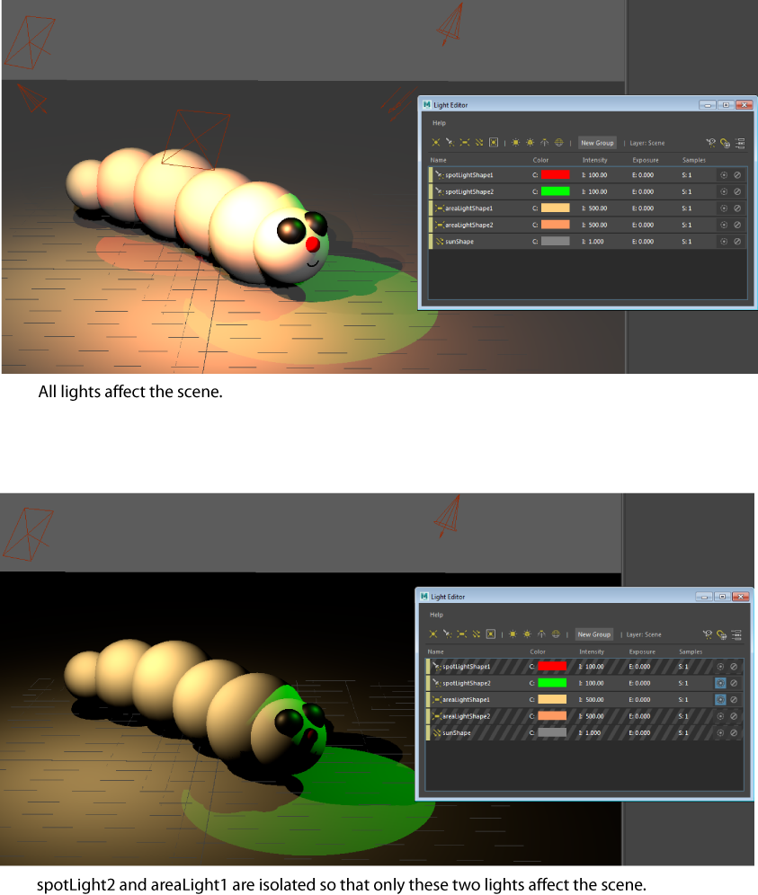 Isolate a subset of lights using the Light Editor so that only these lights take effect in your scene.