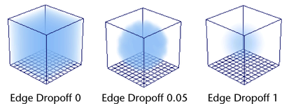 Defines the rate at which the Density values drop off towards the edges defined by the Dropoff Shape. A value of 0.0 results in no dropoff. As the value increases, the Density fades smoothly from the center to the edge of the dropoff shape.