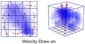 Turn this option on to display velocity vectors for the fluid. Velocity vectors represent the magnitude and direction of the Velocity in the container. Velocity vectors help you visualize the motion path of the fluid.
