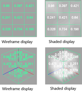 If Contents Method is set to Static or Dynamic Grid for the property selected for Shaded Display, this option defines how to represent the values of the property when Maya is in wireframe display mode.
