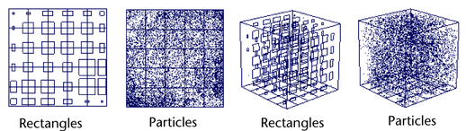 Displays rectangles on the grid lines of the fluid container. Larger rectangles represent areas with higher values or opacity.