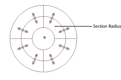 (Torus only) Defines the thickness of the solid portion of the torus, relative to the radius of the torus’s central ring. The radius of the central ring is determined by the emitter’s scale. If you scale the emitter, the Section Radius will maintain its proportion relative to the central ring.