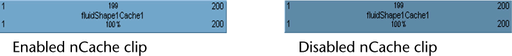 Enabling or disabling nCache clips also enables or disables their corresponding cache nodes and Attribute Editor tabs.