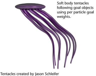 A goal is an object that particles follow or move towards. You can use goals to give trailing particles a flowing motion that’s hard to generate with other animation techniques. The trailing particles move as if connected to the goal by invisible springs. In the context of goals, soft bodies are considered particles.