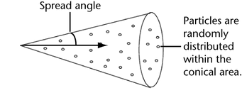 Sets the angle of a conical region where the particles are emitted randomly. You can enter a value between 0 and 1. A value of 1 means 180 degrees.