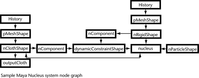 The following nodes participate in the Maya Nucleus system: