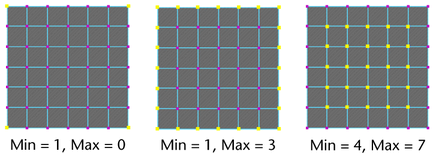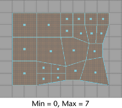 Maya selects the faces with an area that is within the range specified in the Min and Max boxes. See Min and Max values for details about using these values.