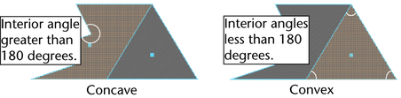 Concave selects polygons that have at least one interior angle greater than 180 degrees. Convex selects polygons whose interior angles are all less than or equal to 180 degrees.