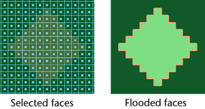 With the Selected faces on, the Flood Paint button and Flood Erase button can flood selected faces on polygons.