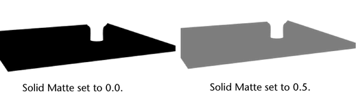 Solid Matte makes the value of the matte channel constant for the material. The value you specify in the Matte Opacity slider is used, instead of the default value.