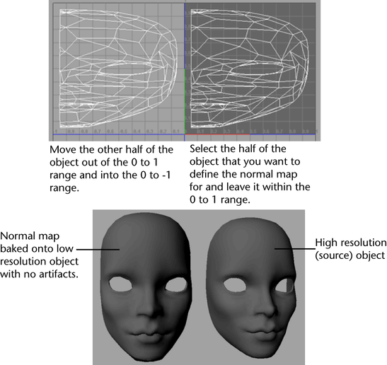If both halves of the geometry are rendered into the normal map on top of each other, the mirroring of the normals introduces artifacts into the combined result. Therefore, you need to specify which half of the geometry defines the normal map (and which half just uses it).