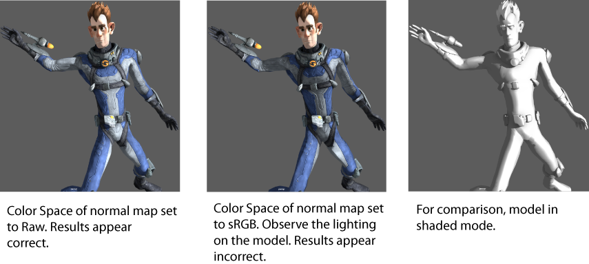 If you have several normal maps in your scene, you can also set a rule so that all files that include "norm", for example in their file names, use an input color space of Raw. This way, you only need to use the letters "norm" in your normal map file names, and you do not need to manually set the color space of each file node individually. See Define rules for assigning color spaces to input files.