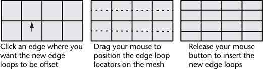 The Offset Edge Loop Tool lets you insert two lines of parallel edges on either side of the edge(s) you select. The parallel edge lines traverse the extent of the edge selection. Offset Edge Loop is useful when you want to add localized detail to a polygonal mesh on either side of a single edge or line of edges.
