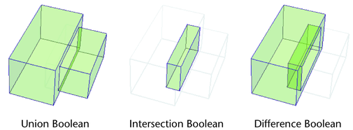 - Union booleans - Combines two or more objects and discards the regions that overlap.
