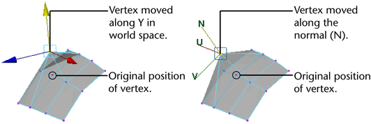 Moving one or several components on a polygon along the direction of their normals is a convenient, easy to manage method of editing a polygon surface.