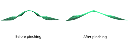 You can pull vertices inwards towards the center of the tool cursor. Pinching is useful for making existing creases more sharply defined.