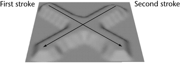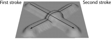 In this example, the two strokes both raise the surface to the maximum displacement distance, but not beyond it.