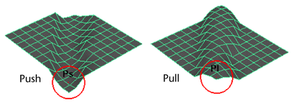 You can push or pull a mesh in a configurable direction in the shape of the tool.
