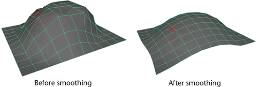 You can paint over bumps to smooth them out. This smoothing operation works by averaging the position of all features within the brush radius with all other nearby features.
