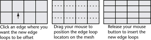 4. Click an edge on the polygonal mesh where you want the new edge loops to be offset from. Do not immediately release the mouse button.