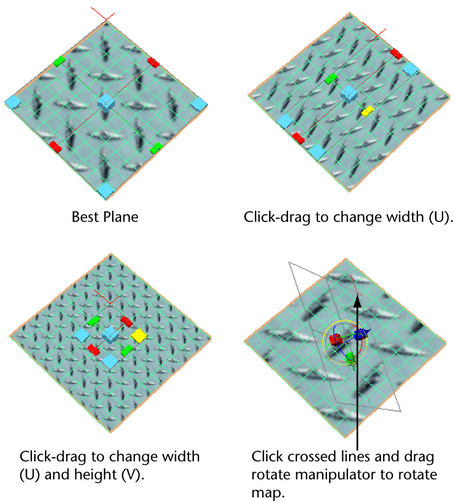 Best Plane Texturing Tool assigns UVs to the faces you select based on a plane computed from vertices you specify, rather than a default axis plane.