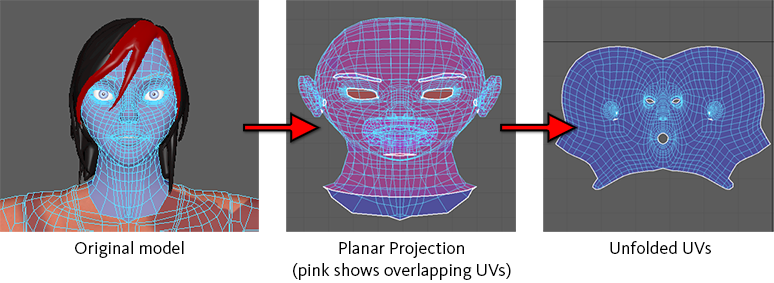 Planar mapping projects UVs onto a mesh through a plane. This projection is best for objects that are relatively flat, or at least are completely visible from one camera angle.