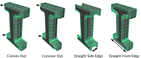 Use this option if you want the tessellated subdivisions to be more evenly spaced across the surface. With Complete turned on, the tessellation occurs along the entire beveled surface, from one surface cap to the other.