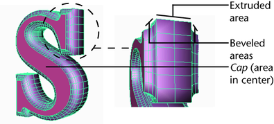 If you choose NURBS, Maya creates trimmed surfaces for the cap areas of the beveled surface. Some external applications, such as game exporters, may not handle trimmed surfaces.