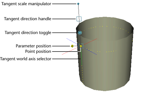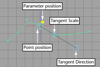 - Drag the parameter position handle to move the manipulator along the curve.