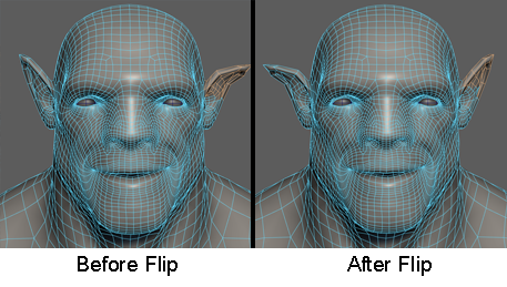 Maya repositions the selection to match the topology on the opposite side of the mesh.