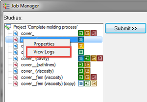 ()), hover over a study in the Studies list, then click the right mouse button and select View Logs from the drop-down menu