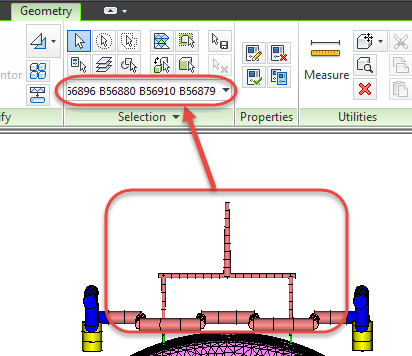 Beam elements are assigned the identification label 'B'. When you select beam elements, the identifiers, which are comprised of the letter B followed by a number, are listed in the selection list.