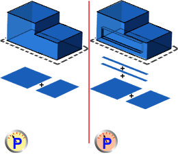The projected area of the cavity is the sum of the area of all of the surfaces projected perpendicularly onto the parting plane. In some cases, some of these projected surfaces may overlap (see image below). The second and all subsequent overlapping surfaces do not contribute to the actual clamp force required in real life, but they are taken into account by the analysis during the clamp force calculation. As a result, the predicted clamp force can be greater than the amount actually required to keep the mold closed.