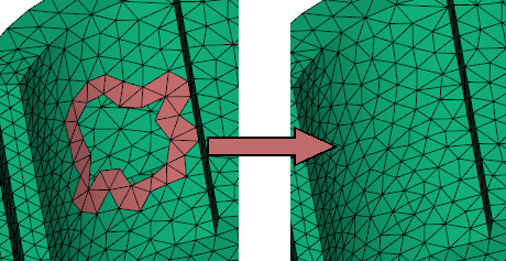 You can identify a hole to be filled, based on either the nodes, or the triangles, around the hole. Use the appropriate tool listed below, based on your preference.