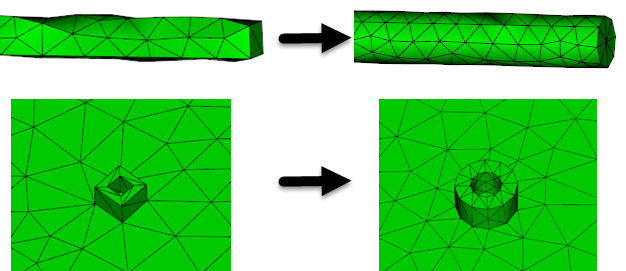 Automatic mesh sizing assigns edge lengths and chord angles on CAD faces automatically, based on model dimension and curvature.