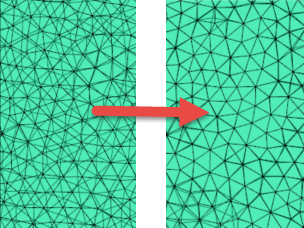 Elements on one side of a good quality dual domain mesh match the elements on the opposite face. Use the