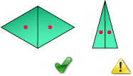 Ideal mesh elements are shown in the left-hand image, below. Non-ideal element are shown in the right-hand image and can be readily identified by the relative location of their centroids