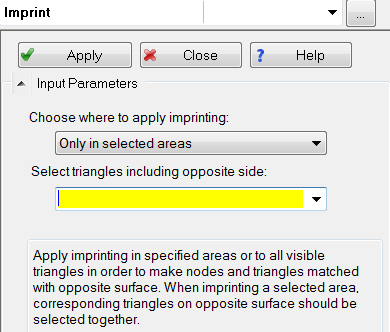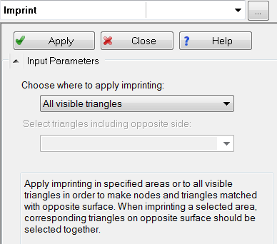 Use the Imprint tool to match nodes and triangles on one surface with those on the opposite surface in specified areas.