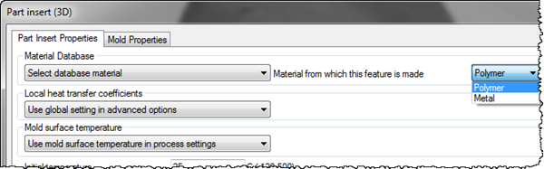 In past releases, it has been possible to assign either metal or polymer materials to inserts, for both thermoplastic and thermoset simulations.
