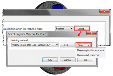 With this release, you can now pick thermoplastic materials for your part insert in thermoset analysis and vice-versa. When selecting the material for the part insert or the core, if you choose Polymer, you can then select either a Thermoplastics material or a Thermoset material.