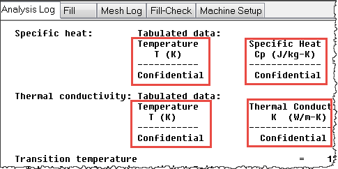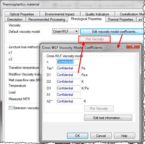 Material manufacturers can now hide confidential material formulation information, specific material characteristics, or model coefficients, for materials stored in the databases. The data is included in the databases and used in the calculations, but is represented in the databases by the word Confidential.