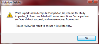 If it is not possible to reconstruct all the surfaces, a partially reconstructed model will be exported. When this occurs, once the export is complete you will see a message similar to this:
